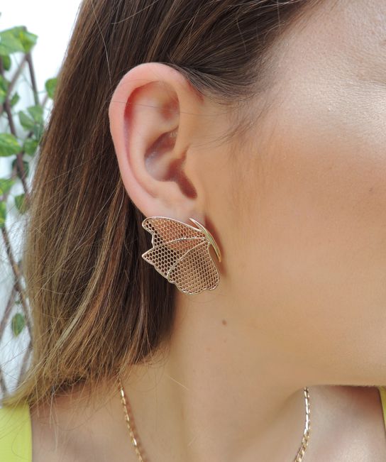 Cada detalhe deste brinco é meticulosamente trabalhado para capturar a essência das asas de borboleta, criando um padrão que encanta com sua beleza sutil. O vazado acrescenta um toque de originalidade e leveza ao design, tornando-o uma peça verdadeiramente única.